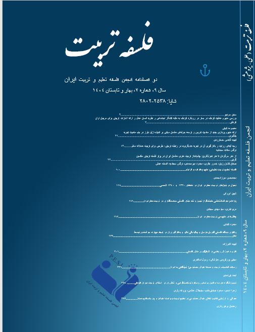 فهرست مقالات دسترسی آزاد مقاله صفحه چکیده متن کامل 1 - بررسی مفهوم عاملیت کودک در بستر دو رویکرد کودک به مثابه کنشگر اجتماعی و نظریه انسان عامل و اشارات تربیتی آن برای مربیان اوان کودکی معصومه کیانی دسترسی آزاد مقاله صفحه چکیده متن کامل 2 - ارائه مفهوم پردازی جدید از ماهیت تدریس و توسعه حرفه ای معلمان مبتنی بر اندیشه ژیل دلوز در باب ماهیت تجربه یادگیری فهیمه گندمی حسنارودی دسترسی آزاد مقاله صفحه چکیده متن کامل 3 - وجه آینه ای روایت و بکارگیری آن در تجربه «دیگری» در رابطه تربیتی: طرحی برای تربیت همدلانه معلم دکتر نرگس سجادیه دسترسی آزاد مقاله صفحه چکیده متن کامل 4 - از هنر سرگردان به سوی هنر اجتماعی و تحولآفرین: چشمانداز تربیت هنری معلمان با نظر به فلسفه تربیتی ماکسین گرینی صادق کشاورزیان خسرو باقری محمود مهرمحمدی نرگس سادات سجادیه افسانه عبدلی دسترسی آزاد مقاله صفحه چکیده متن کامل 5 - فلسفه تعلیم و تربیت تطبیقی : مفهوم،کارکرد و فرایند دکتر محمد حسن میرزامحمدی دسترسی آزاد مقاله صفحه چکیده متن کامل 6 - تحول در بنيانهاي تربيت معلم در ايران در دهه هاي 3013 و 40 13شمسي دکتر شهین ایروانی دسترسی آزاد مقاله صفحه چکیده متن کامل 7 - پارادایم معرفتشناختی حقیقتگرا: مبنای فلسفی سیاستگذاری در تربیت معلم ایران (تبیین و نقد) دكتر سيد مهدي سجادي مریم نادری دسترسی آزاد مقاله صفحه چکیده متن کامل 8 - چالشهای مفهومی تربیت معلم در ایران محمود تلخابی دسترسی آزاد مقاله صفحه چکیده متن کامل 9 - واکاوی نظریات فلسفی گابریل مارسل و چگونگی تاثیر و به کارگیری آن در ایجاد مهارت جراتمندی توسط معلم فهیمه اکبرزاده دسترسی آزاد مقاله صفحه چکیده متن کامل 10 - کاربرد آموزش ریاضی در شکلگیری منش فلسفی مجتبی پورکریمی هاوشکی رسول اسکندری دسترسی آزاد مقاله صفحه چکیده متن کامل 11 - رسالت فیلسوفِ تربیت و مسئله هوش مصنوعی؛ نیمنگاهی به ایران احمد بنی اسدی دسترسی آزاد مقاله صفحه چکیده متن کامل 12 - تبیین انگارۀ مدرسة والدین براساس رویکرد نوخاستهگرایی، و تقش آن در اعتلای تربیت دوران کودکی زهرا اسدی مسعود صفایی مقدم سید جلال هاشمی پروانه ولوی دسترسی آزاد مقاله صفحه چکیده متن کامل 13 - کتاب اخلاق هوش مصنوعی در تعلیم و تربیت : مسائل عملی، بحث و چالش ها رمضان برخورداری